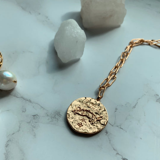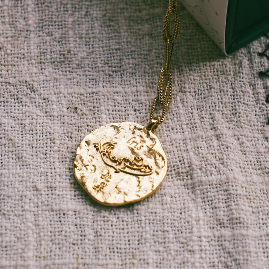 The 12 constellations originated from the Mesopotamian culture, one of the earliest civilizations in the world. There are also Greek mythological stories about the origin of each constellation,the artist drew it on the front of the coin necklace.