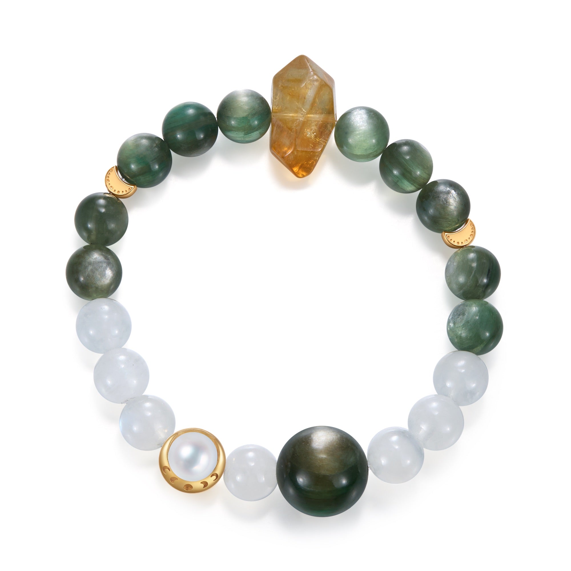 Radiant Uprise / Lunar Phase& Moon Green Lepidolite Moonstone Crystal Bracelet
