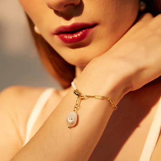 Fine pearls, naturally radiant,each crowned with a delicate diamond.