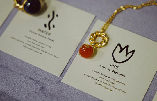 Water, earth, Air and fire are the four elements that constitute our life energy, which are associated with the 12 constellations. We use four gemstones "lazurite, Amber, malachite and Sardonyx" to match the Oracle Bone Script character "Water, earth, wind and fire". Different colors and stones represent their different meanings.